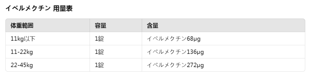 ※45kg以上の犬には、体重に応じて適切な組み合わせを使用(例:45-66kgの場合は272μg錠+136μg錠)。
