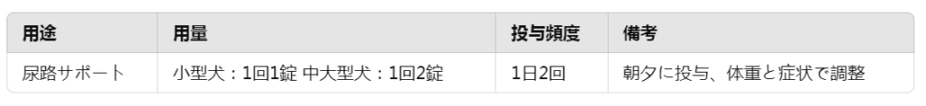 - 高齢による尿路不調:1日2回投与で尿路系の健康を維持。排尿トラブルを予防。